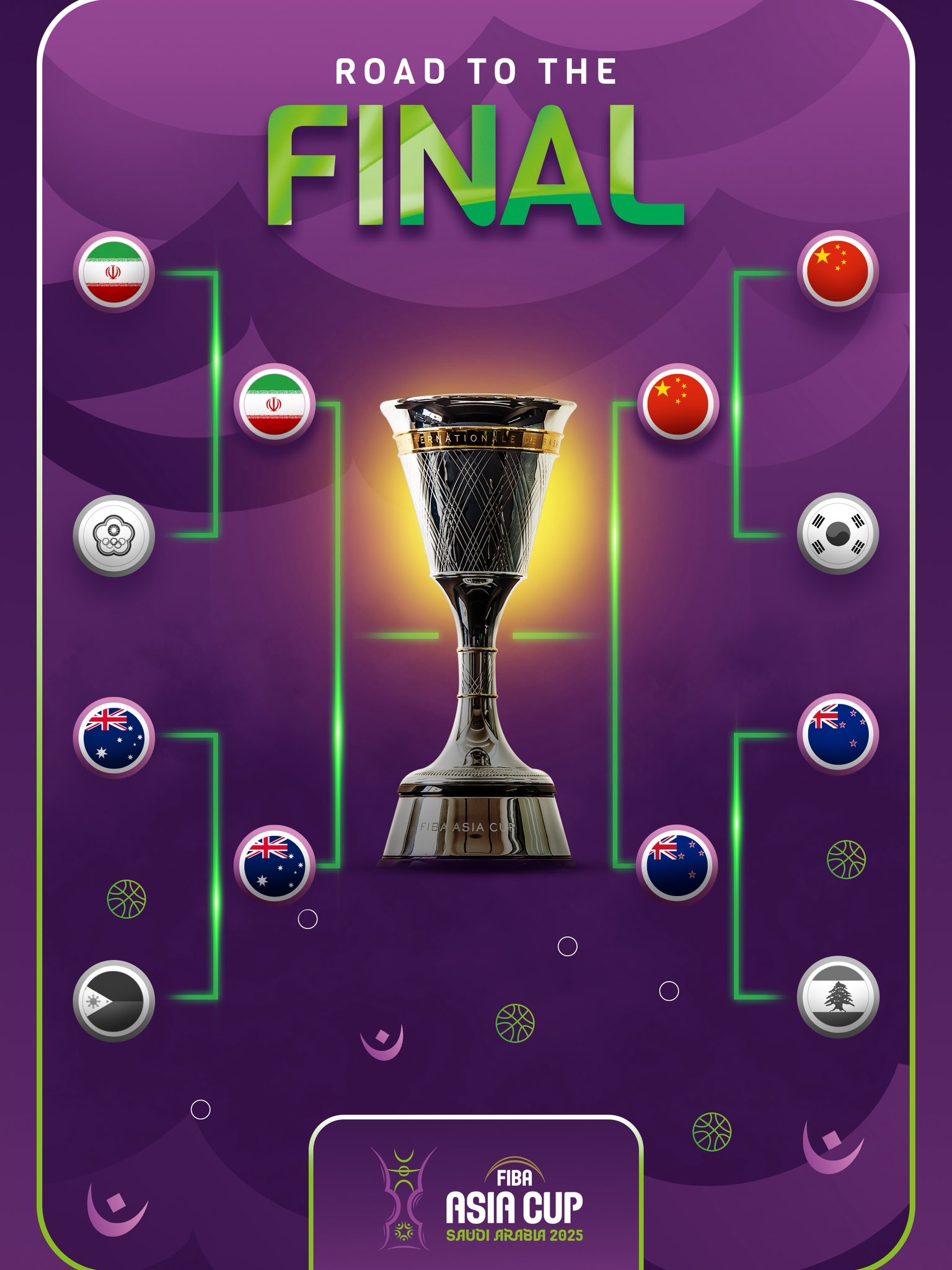 8月15日讯 随着新西兰在最后一场男篮亚洲杯八强赛中22分大逆转黎巴嫩,本届男篮亚洲杯四强对阵正式出炉。具体如下: